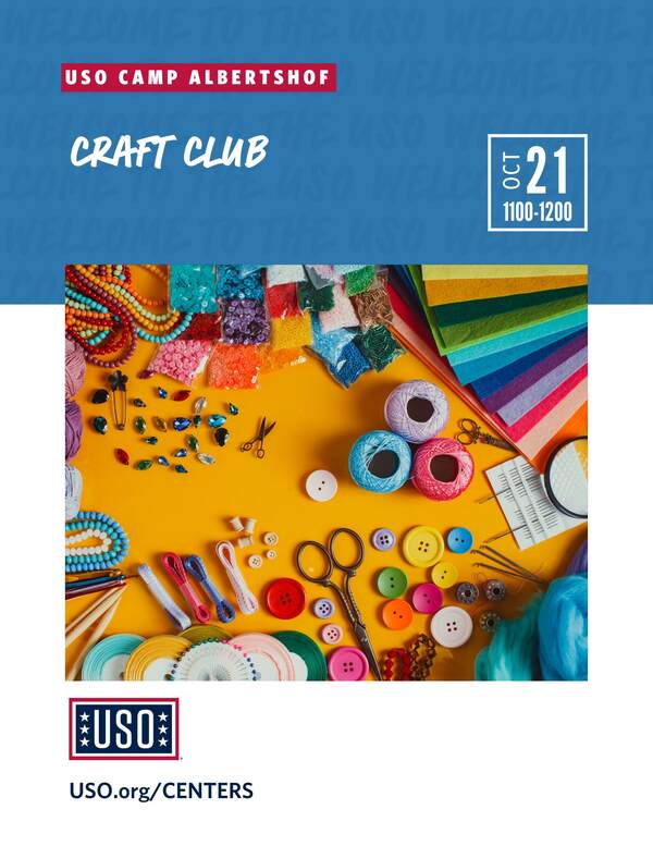 Get creative at the USO with other community members. Bring your own supplies or borrow some of ours. All skill levels welcome!