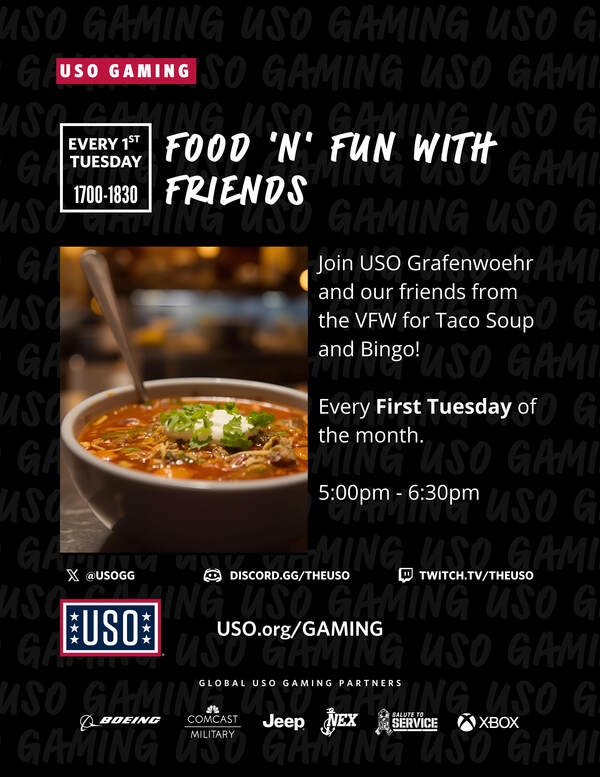 Get creative at the USO with other community members. Bring your own supplies or borrow some of ours. All skill levels welcome!