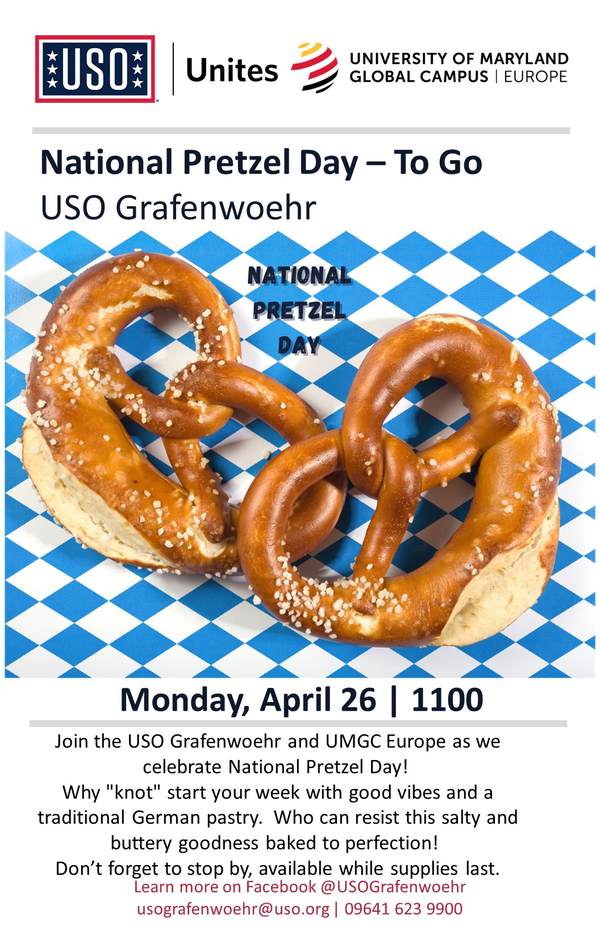 Join the USO Grafenwoehr and UMGC Europe as we celebrate National Pretzel Day!
